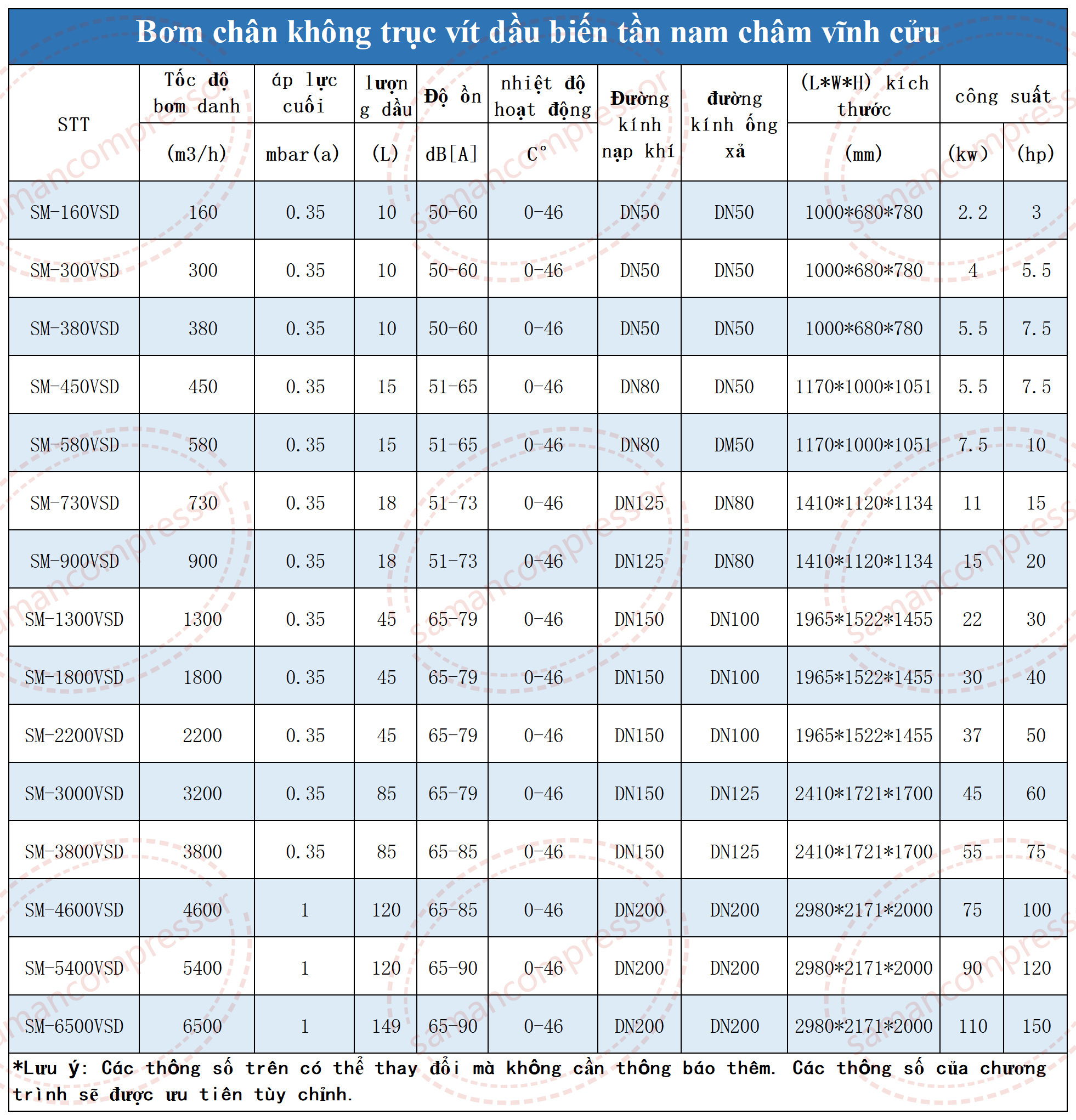 Lựa chọn mẫu cho máy bơm chân không trục vít Saman