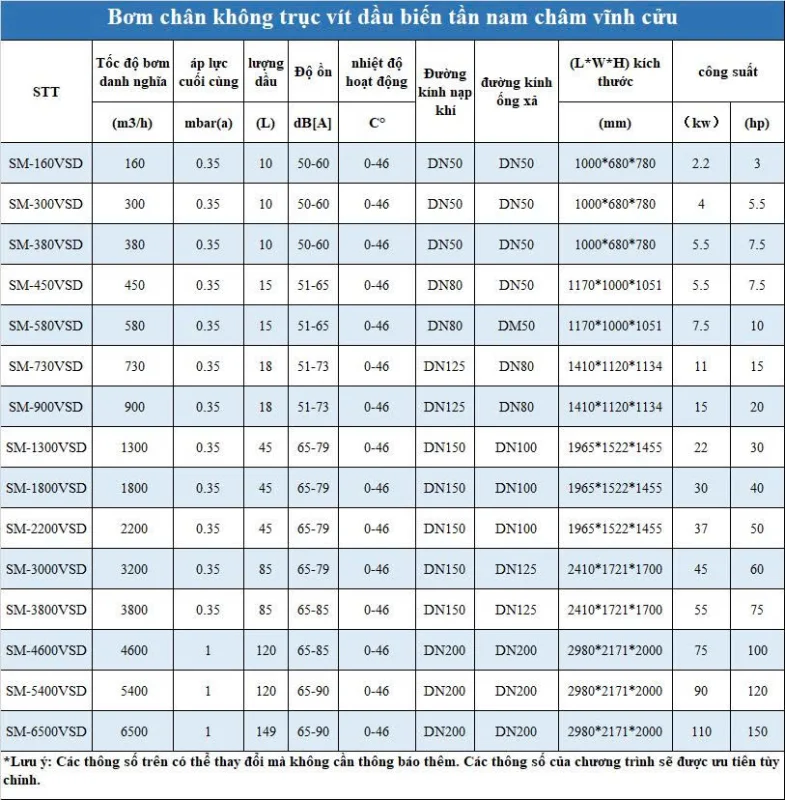 Lựa chọn mẫu cho máy bơm chân không trục vít Saman